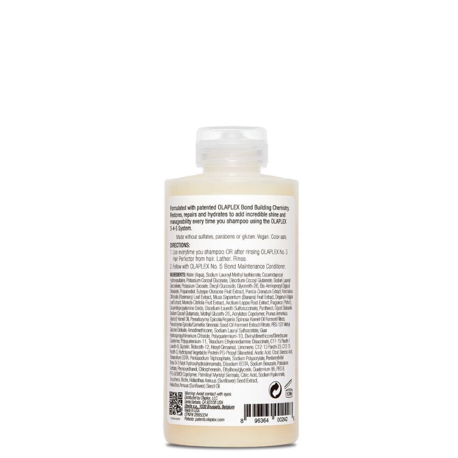 OLAPLEX Shampoo No. 4 contiene una alta concentración de nuestra formula, siendo usado para limpiar, reparar e hidratar el cabello. Está diseñado para ser usado diariamente.
